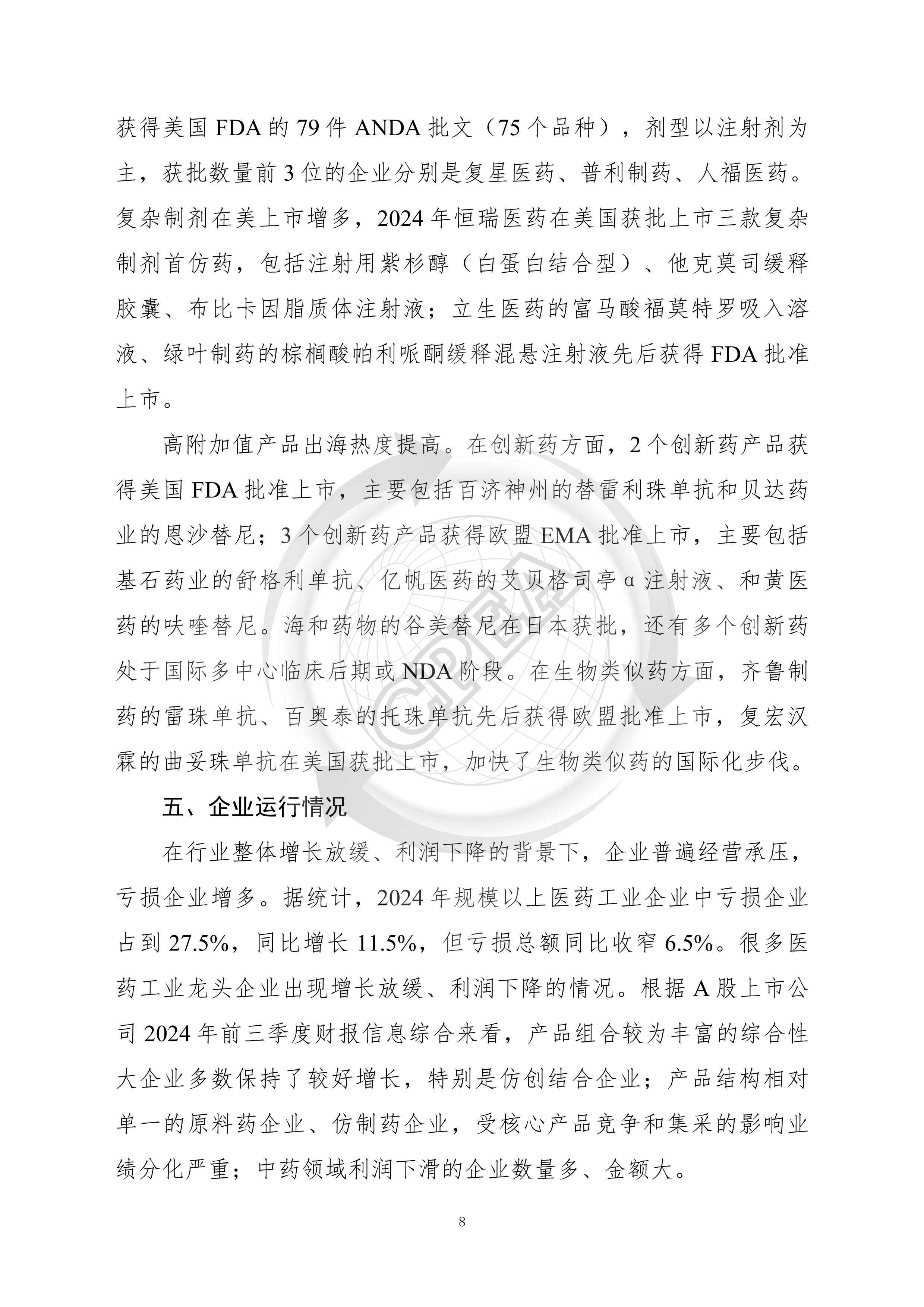 2024年醫(yī)藥工業(yè)經(jīng)濟(jì)運(yùn)行情況