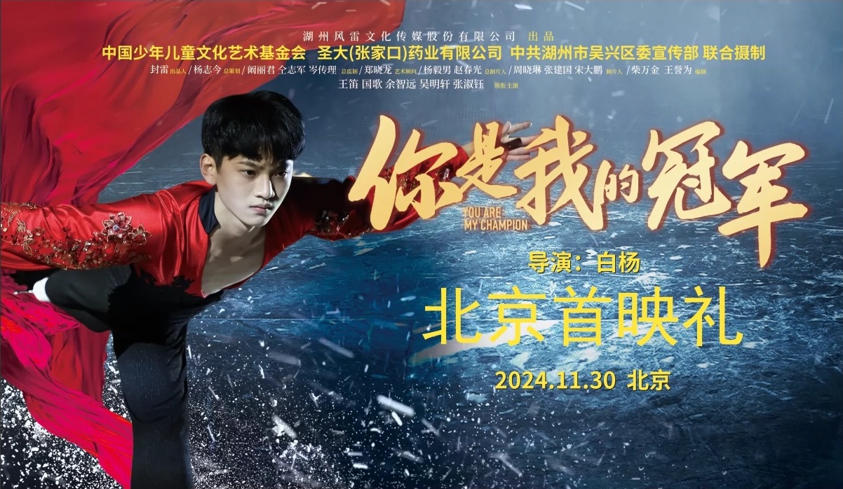 11月30日,由湖州風(fēng)雷文化傳媒股份有限公司出品,中國少年兒童文化藝術(shù)基金會、圣大(張家口)藥業(yè)有限公司、中共湖州市吳興區(qū)委宣傳部聯(lián)合制作的電影《你是我的冠軍》在北京舉行盛大首映禮。